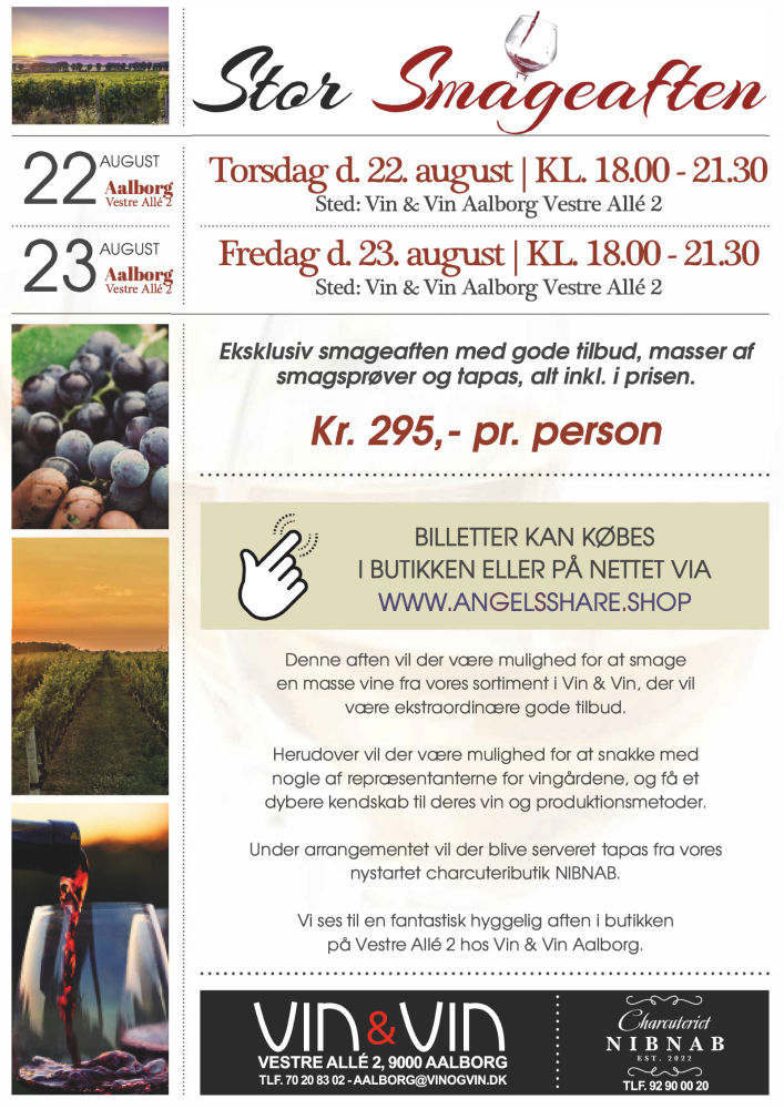 Vi ses til en fantastisk hyggelig aften i butikken på Vestre Allé 2 hos Vin & Vin Aalborg