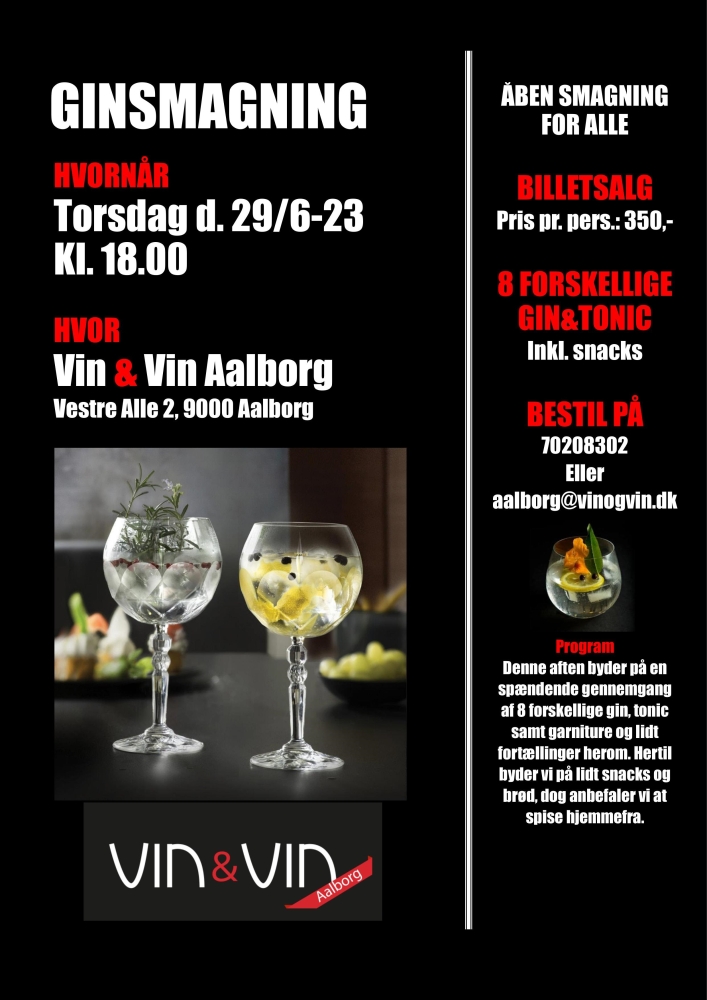 Denne aften byder på en spændende gennemgang af 8 forskellige gin, tonic samt garniture og lidt fortællinger herom. Hertil byder vi på lidt snacks og brød, dog anbefaler vi at spise hjemmefra.