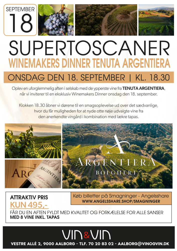 Denne aften skal vi smage supertoscaner i verdensklasse fra Tenuta Argentiera