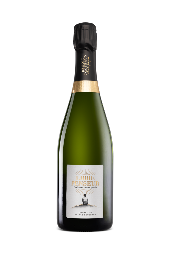 Fremstillet uden tilsatte sulfitter, er Libre Penseur resultatet af en renhedsproces, som Champagne Benoît Cocteaux har igangsat i flere år. Denne 100% Chardonnay, der er lavet i begrænsede mængder – 1.000 flasker, er den reneste udtryk for vores Villenauxe-la-Grande terroir. En elegant og mineralsk Blanc de Blancs champagne med noter af gule frugter, citrus, kvæde og Granny Smith æble.