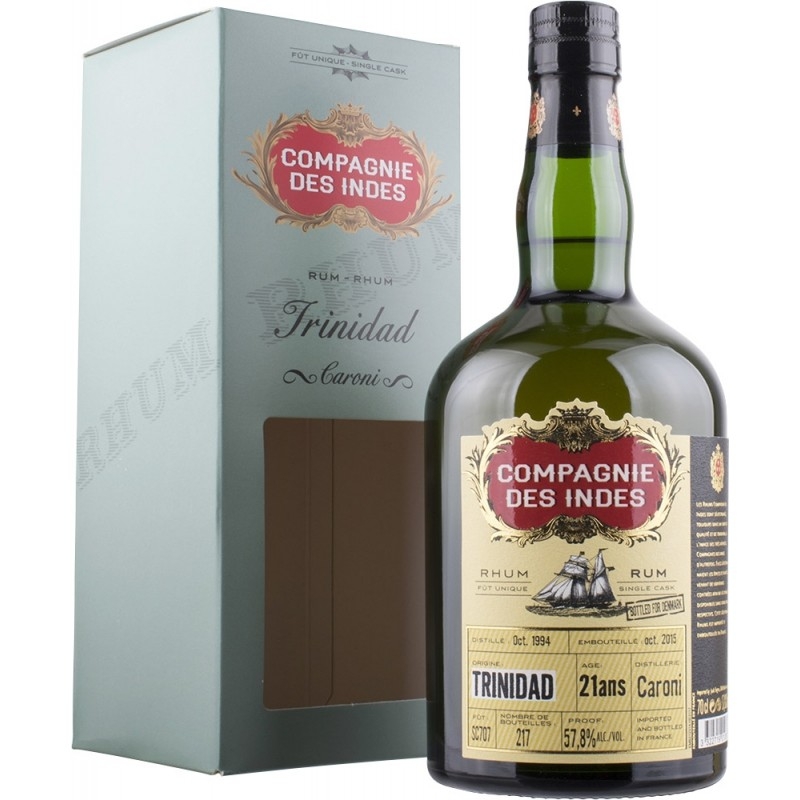 Endnu en fremragende aftapning fradet nu lukkede Caroni Destilleri på Trinidad. Aftappet af den unge Rom komet Florent Beuchet - manden bag Rhum Compagnie des Indes. Denne Cask Strength aftapning er endnu en enkeltfads aftapning aftappet ved fadstyrke på 57,8%. Destilleret 1994, og aftappet 2015. Rommen er modnet i 21 år på gamle bourbon fade og både lagret i Caribien samt en årrække i Europa efterfølgende.