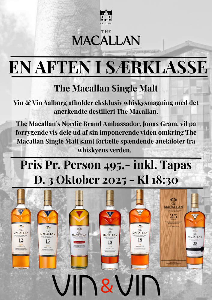 Vin & Vin Aalborg afholder eksklusiv whiskeysmagning med det anerkendte destilleri The Macallan