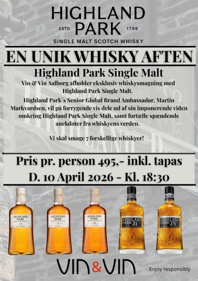 Vin & Vin Aalborg afholder eksklusiv whiskysmagning med Highland Park Single Malt.