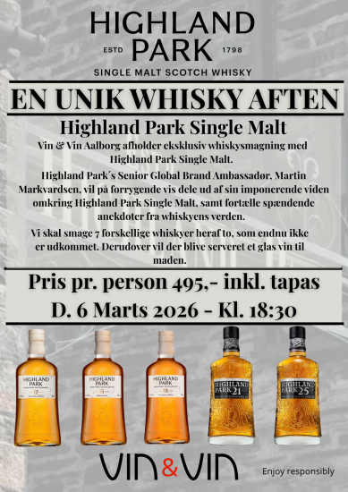 Vin & Vin Aalborg afholder eksklusiv whiskysmagning med Highland Park Single Malt.