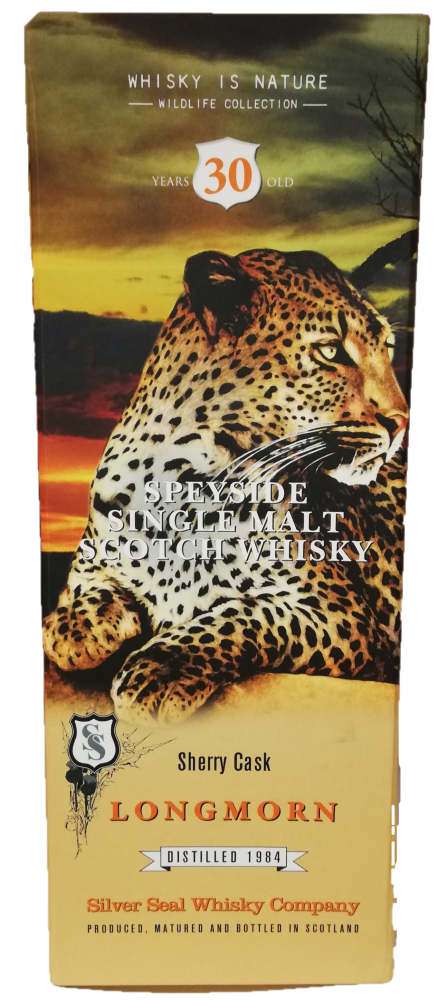 Denne Longmorn 30 års Sherry Cask Whisky er fra Silver Seal, som har aftappet whisky siden 1979. Denne Single Malt Whisky er en del af deres “Wildlife Collection” den bliver frigivet i en begrænset mængde. Denne flotte whisky har en alderen på 30 år og kommer fra Longmorn Destilleriet. Destilleret i 1984 og aftappet i 2015 fra en enkelt tønde ved på fadstyrke 56,3%. Dette ene fad gav en begrænset mængde på kun 420 flasker.