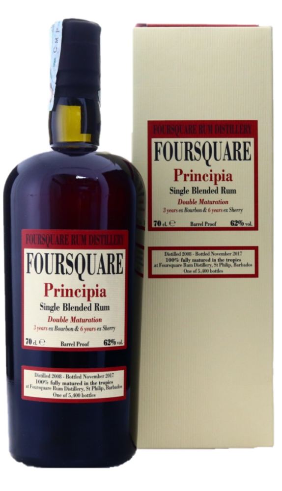 Foursquare Principia er en 9 år gammel rom fra Barbados – den 3. udgivelse i et samarbejde mellem master distiller Richard Seale og allround romguru Luca Gargano fra Velier.